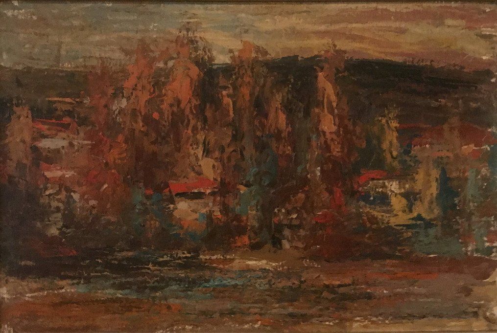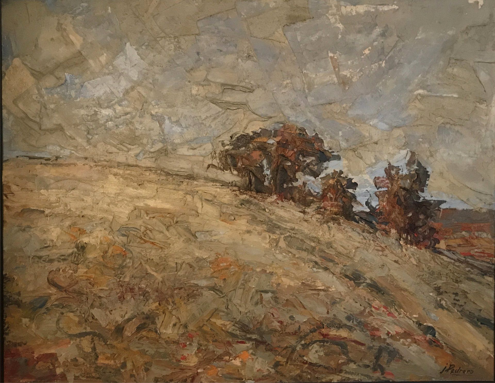Tengo sobre mis ojos, un cuadro con el que convivo. Frente a mi mesa de trabajo me espera, ofreciéndome cada día el espectáculo de sus colores dominados por un gran desasosiego.
