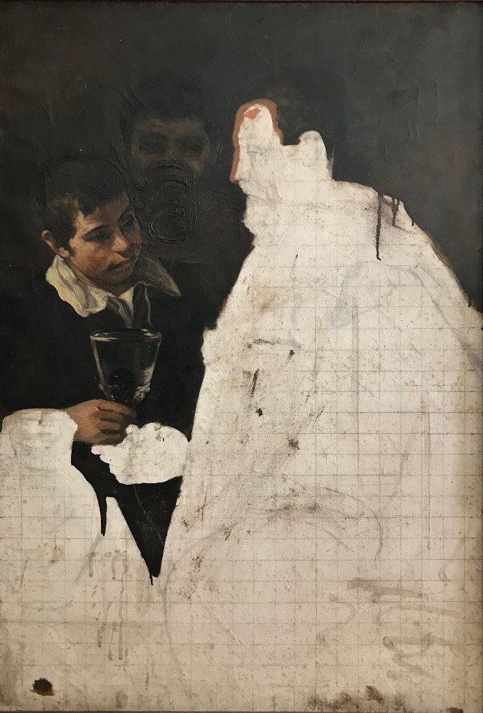 Sin embargo, dentro del lienzo plano, en sus 107 por 72, habita un orden que ofrece una ambientación inquietante,que al contemplarla con espaciosidad y silencio poco a poco va desvelando sus contenidos.